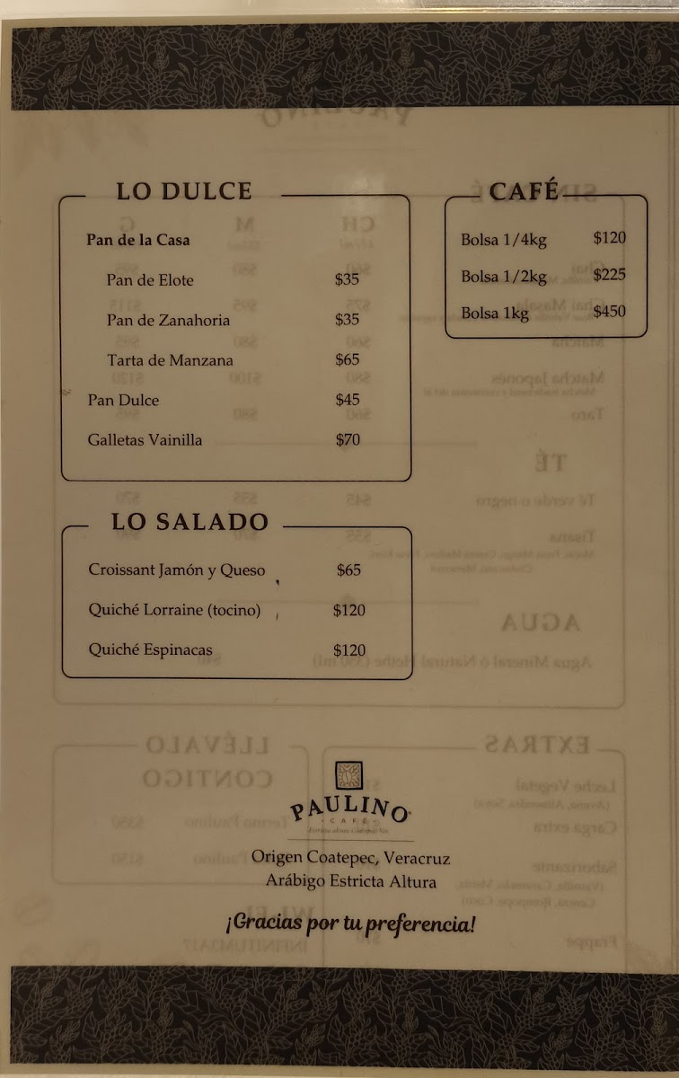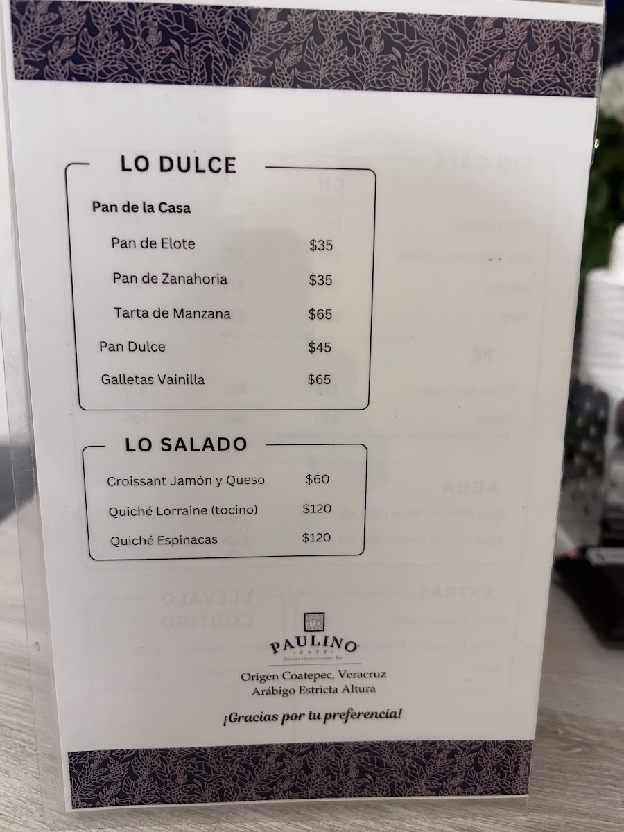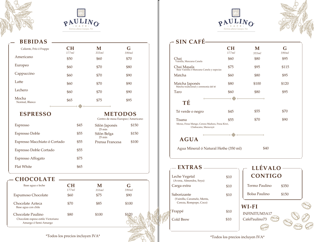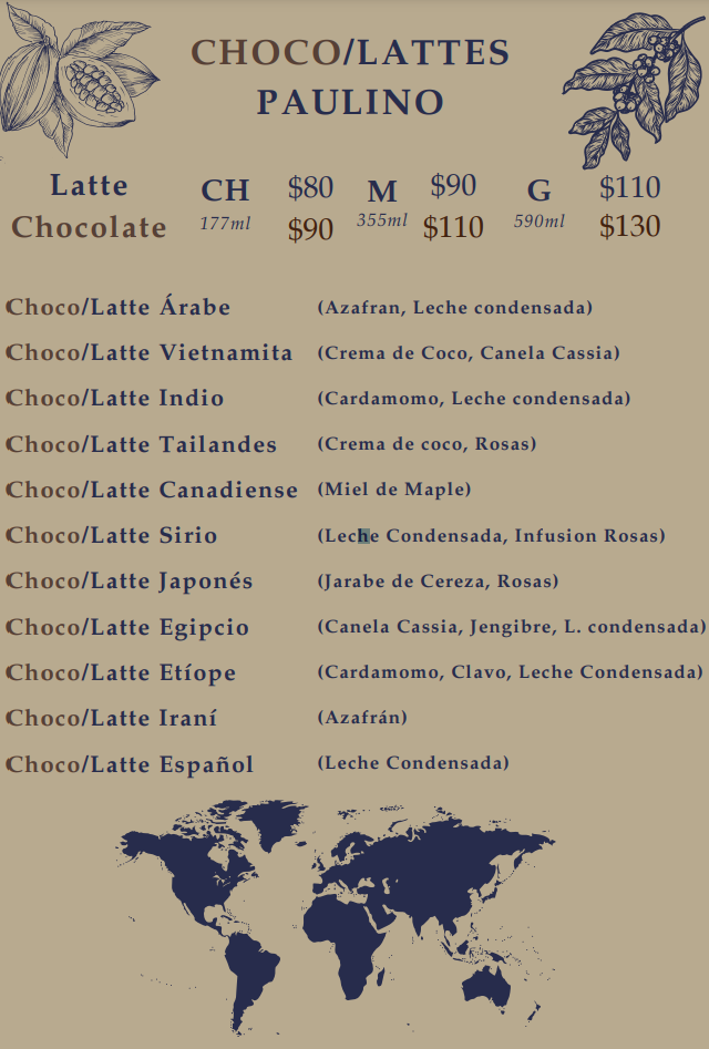 Welcome to Cafe Paulino, a charming cafe nestled in the heart of Santiago de Queretaro. This delightful spot is an ideal destination for coffee aficionados and sweet-toothed patrons alike. With a menu designed to satisfy every craving, you can indulge in classic beverages such as the rich Americano, comforting Cappuccino, or the creamy Latte—all available hot, cold, or as a frappe for just MX$50.00 to MX$65.00.